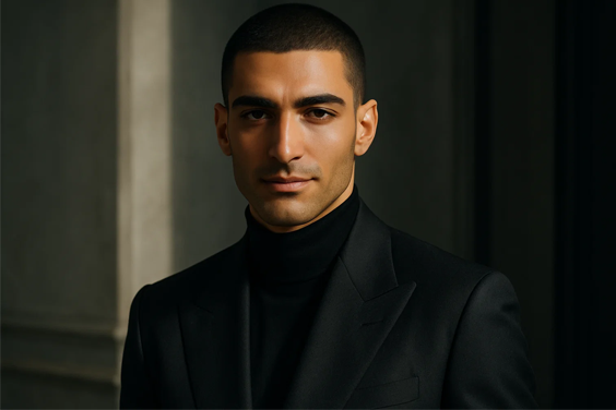 نکته: ترکیب بازکات با ریش مرتب و متناسب تعادل مطلوبی ایجاد میکند و تمرکز را از پهنای پیشانی به مرکز چهره میبرد.
